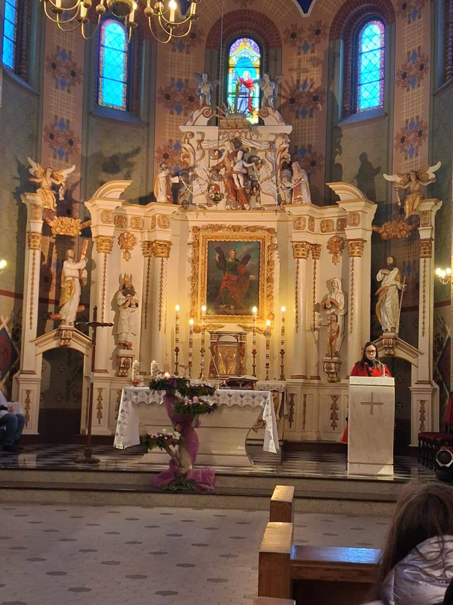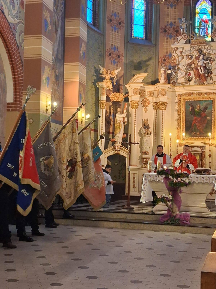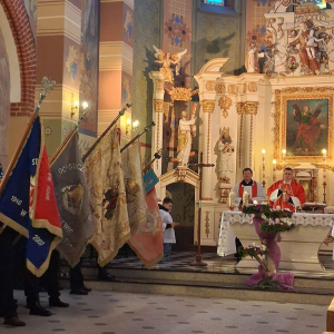We Mszy św. odpustowej oprócz licznie zgromadzonych parafian uczestniczyli również przedstawiciele kół gospodyń wiejskich oraz poczty sztandarowe druhów ochotniczych straży pożarnych.
